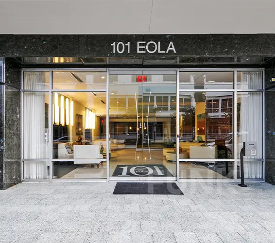 101 Eola is a 12-story high-rise ideally situated within walking distance to Lake Eola, Thornton Park, and College Park. The Orlando condominium complex features modern, emerald green architecture and a variety of restaurants and retail shops on the main floor. Residents can choose from 1-2 bedroom floor plans with 1-2 baths options. Bright and spacious homes are highlighted by floor to ceiling windows and modern touches, including oversized tubs in master suites, wood flooring, granite counters, large balconies, and stainless appliances. Building amenities make daily living fun and smooth with a clubhouse, resort-style pool, and spa. The fifth floor also features a spacious living and entertainment area for residents, and this is the only property in downtown featuring a sauna. 101 Eola offers 24-hour concierge and security as well as gated parking.