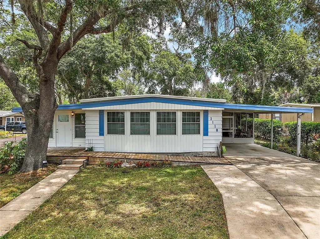 Under contract-accepting backup offers. Charming cottage look manufactured home in Mt. Dora’s Dora Pines 55+ Community, Welcome to this super cute home nestled on a desirable corner lot in the peaceful 55+ community of Dora Pines, Mt. Dora, Florida. With low HOA fees and access to fantastic amenities, this home offers both comfort and convenience.A long entry ramp provides easy access to the front door, making this home ideal for those seeking mobility-friendly features. Inside, you’ll find open, well-lit living spaces with bare wood-look flooring and tile throughout—creating a warm, inviting atmosphere.The spacious kitchen boasts oak cabinetry, generous counter space, and room for a cozy dinette—perfect for casual meals or morning coffee. Step out to the screened-in lanai where you can relax and take in views of the beautifully landscaped side yard garden, filled with Florida’s native flora and fauna. Roof is 2019, windows replaced 2014, hvac 2014. Just a short stroll away, enjoy the community pool and other recreational facilities designed for an active and social lifestyle.