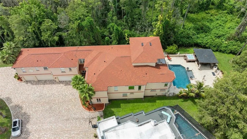 Experience Unparalleled Lakefront Luxury Living. Welcome to your private oasis, a majestic three story lakefront estate nestled on the shores of Spring-Fed Lake Georgia in East Orlando. Designed to embody the essence of Florida’s luxury lifestyle, this exceptional 7,315-square-foot residence offers breathtaking sunset views, impeccable craftsmanship, and world-class amenities. Step into the grand foyer and instantly feel the allure of fine living. Every inch of this home speaks of sophistication from the owner's suite, a true sanctuary with its expansive lake-view seating area, a palatial dressing room, and a spa-inspired bathroom featuring a sauna and a soaking tub framed by serene vistas of the pool and lake. The estate boasts 10 spacious bedrooms and 9.1 baths, with an elegant second-floor wing designed to balance privacy and comfort. Here you'll find five expansive secondary bedrooms, a versatile common area perfect for a study or lounge, and a guest suite with a private balcony and full bath. The gourmet kitchen is a dream come true for chefs and entertainers alike, showcasing granite countertops, a propane gas stove, convection and double ovens, and a centerpiece island with seating, designed for both functionality and beauty. Elevate your entertainment experience on the third floor, where a media room with panoramic floor-to-ceiling windows opens to a private deck overlooking the lake. Adjacent to this space is a custom-built home theater, designed to provide an immersive experience for movie nights and gatherings. The in-law suite, with its own private entrance, comprises two en-suite bedrooms, a full kitchen, living room, and utility room, making it ideal for extended family or long-term guests. An attached apartment wing with three master bedrooms, a full kitchen, and living areas offers further versatility, providing privacy without compromising the home’s grandeur. Built with enduring quality, this estate features concrete block construction to the roof (replaced in 2022), 3/4-inch solid oak flooring, and cutting-edge amenities including instant-on tankless hot water, a whole-home surround sound system, and integrated video security monitoring. Car enthusiasts will appreciate the oversized five-car garage, with one bay under air conditioning, alongside dedicated boat and RV parking. The meticulously landscaped half-acre lakefront lot boasts a stunning brick-paver pool deck, seamlessly blending with the natural beauty of the lakefront. Stroll along the private dock, equipped with an electric boat lift, and enjoy effortless access to boating, fishing, and watersports. Located just minutes from Winter Park, UCF, and Orlando's vibrant attractions, this architectural masterpiece combines tranquility, luxury, and convenience. Don't just dream of a waterfront paradise own it..