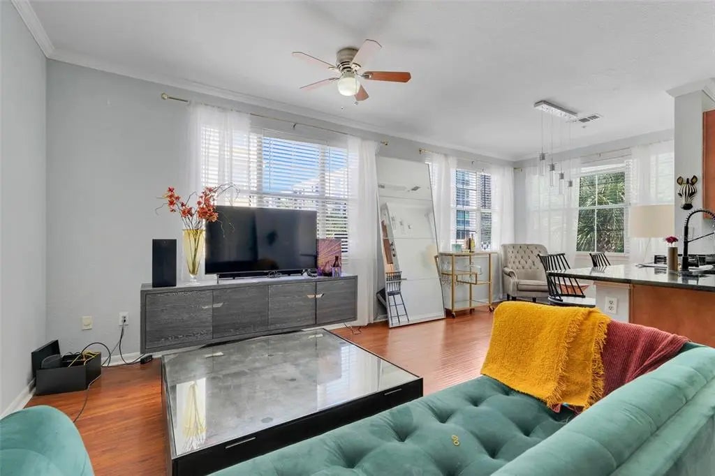 This rare opportunity! Now available 2 bed, 2 bath corner unit with abundant windows and natural light. Ample storage with walk-in closet, hall closet, and built-in desk. Open, spacious floor plan featuring a dedicated dining area and breakfast bar. Includes in-unit laundry and "TWO" reserved deeded parking spaces. This secure community includes lush landscaping, elevators, two pools, and a fitness center. The HOA covers water, sewer, trash, and pest control. Walkable to shops, restaurants, Sun Rail station, entertainment, and urban trail. Corner units are rare—Don't miss out!