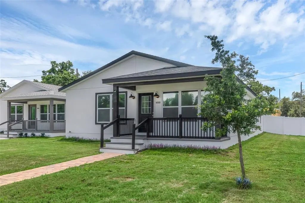 MOVE IN READY! Stunning New Construction with Rare Open Floor Plan! on Large Corner Lot Ready for immediate occupancy! Welcome to this exceptional 4-bedroom, 2 1/2-bath Single Family Home, a rare gem in the heart of a thriving community. Located just across from the picturesque Lake June, this home offers a unique blend of modern luxury and scenic beauty. As you approach, you'll be greeted by a front porch that provides a perfect spot to unwind and enjoy breathtaking lake views. Large picture windows in the front of the house invite an abundance of natural light, creating a warm and inviting atmosphere. Inside, the home boasts a spacious open floor plan that seamlessly connects the living, dining, and kitchen areas. The kitchen is a chef's delight, featuring soft-close cabinets, stainless steel appliances, and elegant quartz countertops in both the kitchen and bathroom vanities. On the island countertop, you will also find pop up power outlets for extra convenience that can be stowed when not in use. These upscale finishes are just a glimpse of the many features that set this home apart from others, making it a truly special and modern living space. The Primary suite is a sanctuary of comfort and style, with dual vanity sinks and his/hers walk-in closets, providing ample storage and adding a touch of luxury to your daily routine. No expense was spared in its construction. The home was upgraded with spray in insulation and UV window film on all doors and windows for extra efficiency. A spacious backyard as well as the side yard facing the street are enclosed with a vinyl fence creating an expansive private setting. The large concrete slab in the back can accommodate a grill, table and seating for outdoor entertainment. Beyond the property's boundaries, the Holden Heights Community Center awaits just across the street. This state-of-the-art Orange County facility, established in June 2015, spans 10,500 square feet and offers a myriad of educational and recreational community programs for all ages. All other needs can be addressed with a short 7-minute commute to Downtown Orlando points of interest. Immerse yourself in a vibrant community that values both comfort and convenience. Don't miss the opportunity to make this outstanding new construction home yours—where modern living meets natural beauty, and community amenities are right at your doorstep!