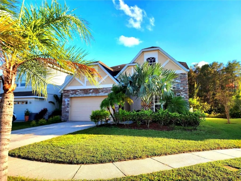 Experience the pinnacle of luxury living in this exquisite 5-bedroom, 4-bath pool/spa estate in the gated Sandhill Preserve community near Lake Nona, where rows of palm trees line the entrance and each home features its own, creating a resort-like charm. Located within this private, palm-lined enclave, the home welcomes you with undeniable curb appeal—featuring a 5-car driveway (including a 2-car garage), lush landscaping, and a signature Bismarckia palm. Inside, soaring 24-ft ceilings, architectural windows, and a bright, airy layout create an enchanting atmosphere where natural light fills every corner and the outdoors is always within view. The large gourmet kitchen features new stainless steel appliances, deluxe 42" cabinetry, 10-seat breakfast bar, center island, and custom finishes. It flows effortlessly into the family room and out to the triple glass door screen-enclosed, heated pool and jetted spa area. In the evenings, the illuminated water and forest backdrop create a serene, retreat-like setting, enhanced by underwater pool and spa lighting that delivers a stunning nighttime ambiance. The heated pool and jet spa, powered by a high-efficiency heat pump. This home includes a family room, formal living area, dining room, breakfast nook, laundry room, large guest powder room, there are five spacious bedrooms, (two primary suites with ensuite baths and walk-in closets, one of which is located on the main floor). Additional highlights include an upstairs loft/lounge, a Jack-and-Jill bath, and a mini balcony overlooking the family room, pool, and treetops. Enjoy ultimate privacy with no rear neighbors and over 20ft of space beyond the pool screen. The oversized garage features 12+ foot ceilings and a large attic, providing additional storage or the perfect setup for a workshop, gym, or hobby space. For added convenience, a spacious storage area is tucked beneath the staircase, perfect for seasonal items, luggage, or pantry overflow. Beyond the fence on the right side lies additional open space-ideal for recreational sport, expanded landscaping etc.
