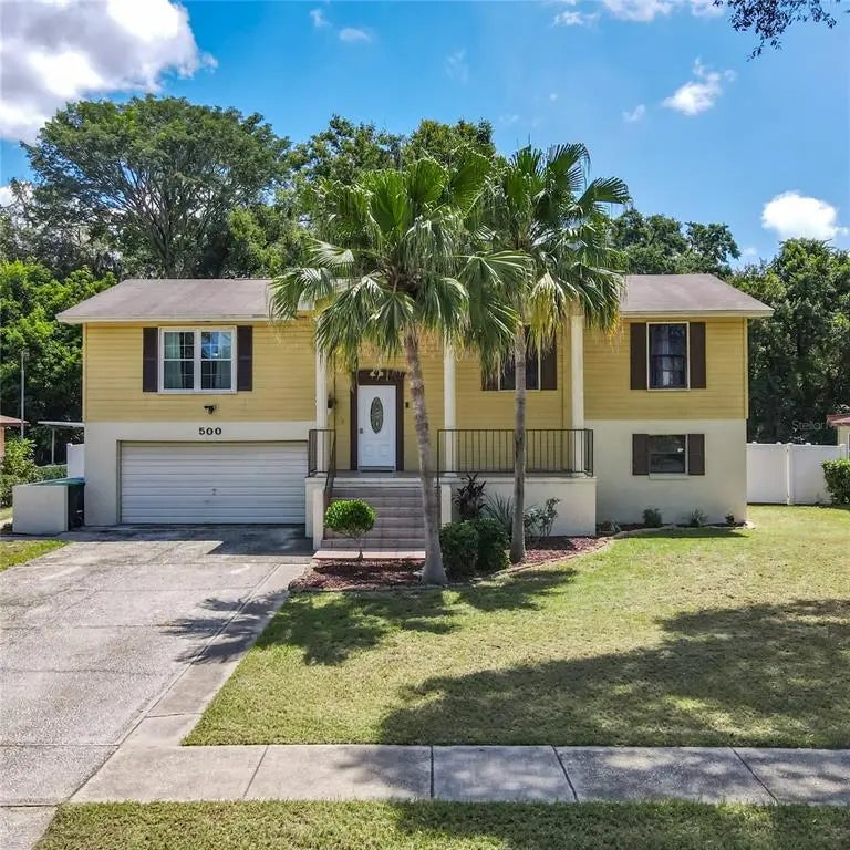PRICE DROP! $54,600!!! BRING ALL OFFERS!!! SELLERS ALREADY PURCHASED HOME OUT OF STATE! Welcome to this beautiful community of Rolling Oaks! This Split-Level home is well designed for family life. A lower level with private entrance to the backyard is great for multi-generational in-law living, teenagers, tenants, a daycare, home office, personal training gym, game room, media room, and a whole host of possibilities! Currently, there is a full bathroom, living area with an entertainment bar, bedroom with a walk-in closet. There are pipes and electrical behind the walls to easily install a kitchen. As you enter the front door, walk upstairs to the living room, kitchen, dining room, along with three bedrooms, which includes the primary bedroom with en suite and another hallway bathroom. The freshly painted eat-in kitchen boasts stainless steel appliances, under sink reverse osmosis water system, center island and pantry. The large living room has new laminate flooring, argon gas windows, fresh paint and a large 65" TV that remains with the home. The freshly painted dining room has new flooring that leads out to the deck. This spacious deck is great for summer grilling and relaxing. The large backyard has new vinyl fencing with orange and lemon fruit trees. Newer storage shed in the backyard, for all your gardening supplies. There is room in the backyard for a pool, boat or RV and there are no HOA fees. Excellent location with quick access to nearby shopping, restaurants, Wekiva Springs State Park, Hwy 436/Semoran Blvd, SR 429 and I-4! This is a wonderfully well-cared-for home and will no doubt go quickly!