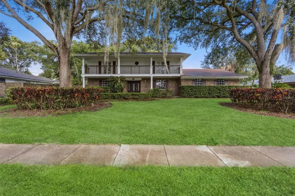 Classic Colonial Brick Home on highly desired E Adama Drive across from Lake Maitland! 4 bedrooms, 4 Baths, 2 fireplaces-one in Primary bedroom! Full 2nd floor balcony porch with French doors! Terrific home for entertaining! Formal Dining room across from Formal Living room connected by large foyer! Family room/Library with built in shelves on both ends with wood burning fireplace! French door lead to huge covered screened room with summer kitchen. Sip morning coffee while overlooking inground pool! Relax on your huge front porch while watching the squirrels play in the mature trees serenaded by a variety of musical birds! Two car garage with long driveway