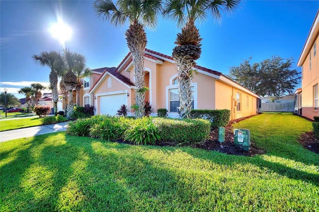 Gorgeous 4 bedroom 3 bath one story Mediterranean architecture style furnished pool home in the beautiful manned and gated community of Solana. Solana offers resort amenities. This spacious pool home is beautifully furnished and in "move in ready" condition for it new owner. Brand new luxury vinyl planking in ALL bedrooms and the dining area, high ceilings, lots of light, and a games room for you or your guests enjoyment. This property has no rear neighbors and the pool is South facing! Solana offers a large clubhouse with a fitness center, business center, ping pong, pool table, arcade, a large community pool spa, miniature golf, Tiki Bar, playground with slide, and a manned guard at the gate. This property is ideal for primary resident or a 2nd home that is zoned for short term rental. Solana is conveniently located to Disney and other theme parks, shopping, medical care, restaurants, and Hwy #27 and I-4.