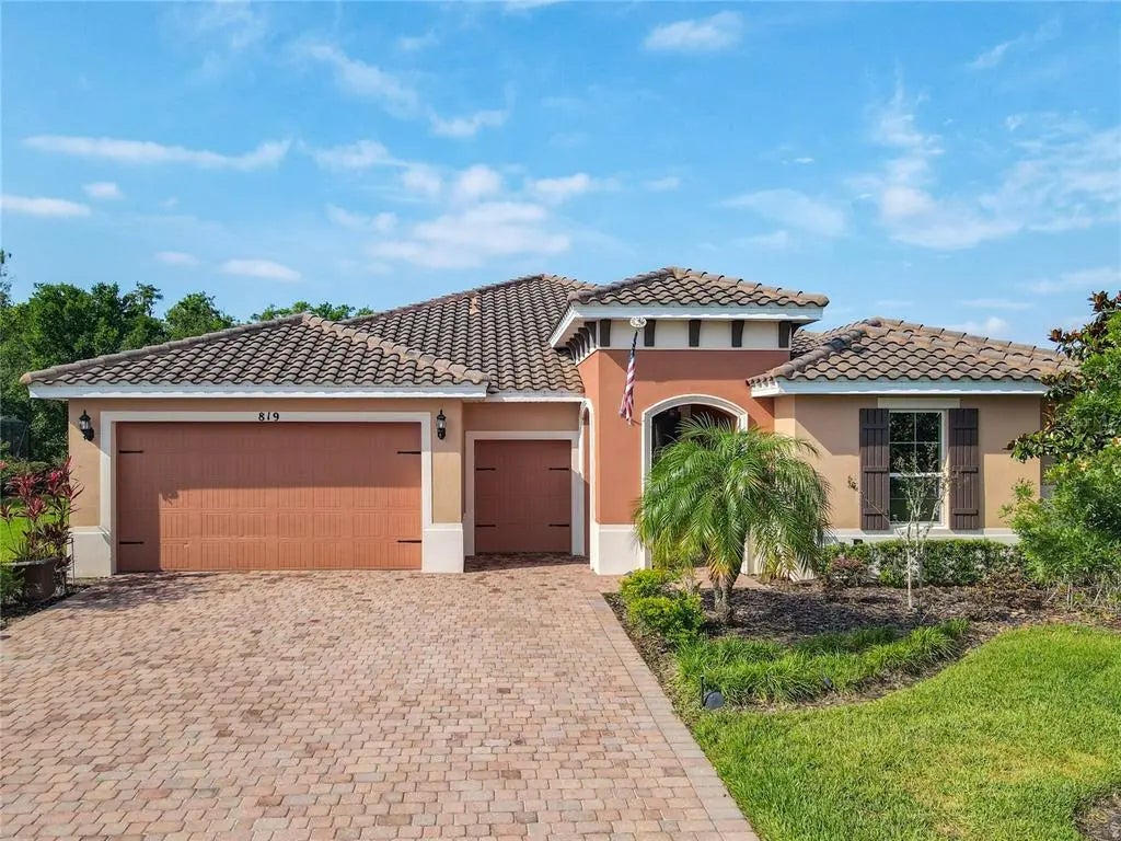 Welcome Home to 819 San Raphael St, a SIENA Model Home on an OVERSIZED LOT in the PORTOFINO ESTATES Neighborhood of Solivita. This Stunning ESTATE Home located on Pristine Conservation is a must see. A Tuscan Tile Roof, a 2 Car PLUS Golf Cart Garage, a Welcoming Entry Foyer that leads to a Gourmet Kitchen with Granite Countertops and Stainless Appliances. A Large Screened and Covered Lanai with Amazing, Private Views of the Conservation. This Modern, Open Plan Model Home has 2,427 Sq. Ft. of Interior Space under air that includes a Kitchen, Great Room, Dining Room, 3 Generous Bedrooms, 2 Full Baths, plus a powder bath and a Large Den. The perfect home with a bit of extra space for entertaining family and friends in grand style. The Primary Suite is generous with TWO Walk-In Closets and an Upgraded Amazing Primary Bath that includes a HUGE Tiled, Glass Surround Walk-In Shower, dual vanities, and a private WC. The Gourmet Kitchen has upgraded Espresso Cabientry, Newer appliances, a Wine Station, a Large Walk-In Pantry and beautiful Granite counters. Upgraded Ceramic Tile in all public spaces with Laminate Flooring intalled 4/22 in all Bedrooms plus the Den. Additonal Upgrades include a Trey Ceiling in the Dining Room and Foyer plus a Stunning Coffered Ceiling in the Great Room. The exterior was painted in May 2022. This is a must see home in a beautiful neighborhood. Bring you personal style to make it your own! Solivita is an award winning 55 PLUS GOLF CART COMMUNITY approximately 45 minutes from Disney World and Orlando International Airport. The amenities include 2 18 HOLE CHAMPIONSHIP PGA GOLF COURSES, an aquatic driving range and practice area, 2 state of the art FITNESS CENTERS with the latest equipment, trainers, and classes. There are 14 temperature controlled POOLS to enjoy as well as Tennis, Bocce, Pickleball, Shuffleboard and Softball. The Village Center features an Art Studio for classes, Billiards Room, Starlight Ballroom for parties, dances and shows. Meet friends for a meal at Stonegate Grille, The Bistro or Mosaics, join any of our 200+ clubs, shop at our twice weekly Farmer’s Market or K&M, the community pharmacy/sundries store. Solivita offers something for everyone, take your “best friend” to the dog park, garden in the community garden or take a class at Solivita University. The HOA maintains the landscaping and irrigation throughout the community as well as security and Fiber Optic TV and Internet. Across the street from the main entrance are a hospital and medical offices as well as Poinciana Plaza featuring TJMAXX, Rackroom Shoes, Burlington, 5 Below, Ulta Beauty, PETCO, Hair Cuttery, First Watch, Sprouts Market and more to come. If you are looking for lifestyle and amenities, Solivita is the place to be!